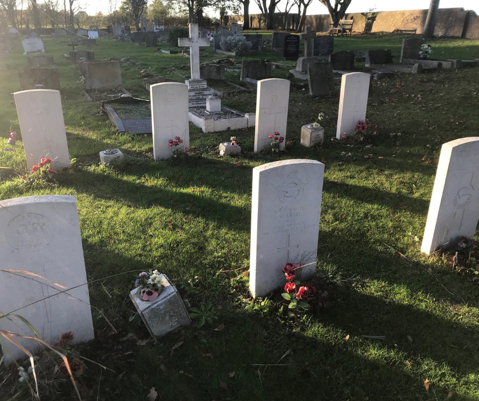 The cemetery is also home to 21 Commonwealth War Graves with their distinctive white headstones, some of which are in a group near the second, more modern entrance, while others are scattered throughout the area among the memorials. Six of the Commonwealth War Graves relate to casualties from the First World War and 15 from the Second World War. Their numbers include Rita Mary Rose Turner, a WREN who served on HMS Midge and died in 1943 aged 19.